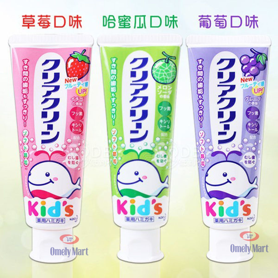 Thấu hiểu nhu cầu chăm sóc răng miệng của các vị khách hàng nhí, tập đoàn Kao Nhật Bản đã nghiên cứu và cho ra đời kem đánh răng cho bé với các hương: dâu, nho, dưa gang. Sản phẩm được sản xuất theo tiêu chuẩn nghiêm ngặt của Nhật Bản, được chứng nhận là kiểm định là an toàn cho sức khỏe của bé. Sản phẩm không được nuốt, nhưng vẫn đảm bảo an toàn dù cho trẻ nhỏ chưa biết tự nhổ kem ra ngoài khi đánh răng .